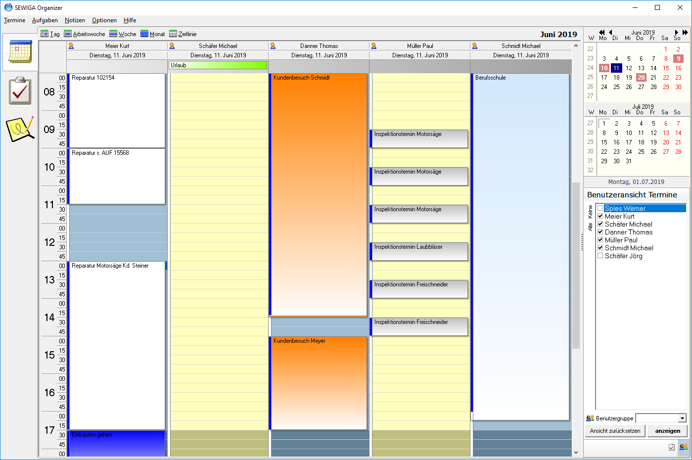 Der SEWiGA Organizer verwaltet Termine, Aufgaben und Notizen. Aufgrund seiner Mehrbenutzer- und Netzwerkfähigkeit können Termine sowie Aufgaben von anderen Mitarbeitern angezeigt oder zugeordnet werden. Die Anbindung an die Warenwirtschaft WinMLB ermöglicht ein komfortables Aufgabenmanagement.